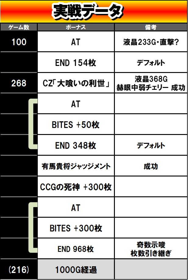 | 最終差枚数 | +216枚 |