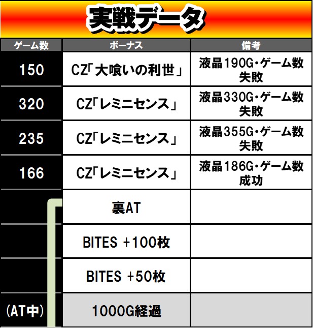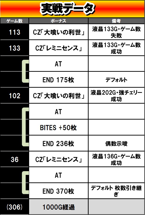 結局ハマり散らかすとどうにもならないので、軽いCZ、特に100G台と300G台でのヒット率に注目しておくべきかなと思います。