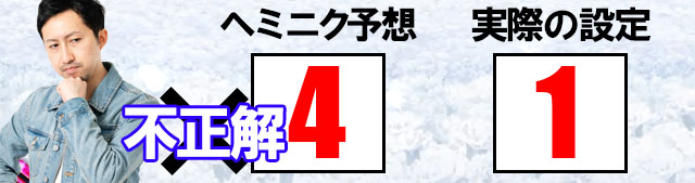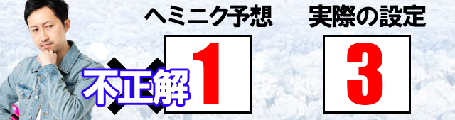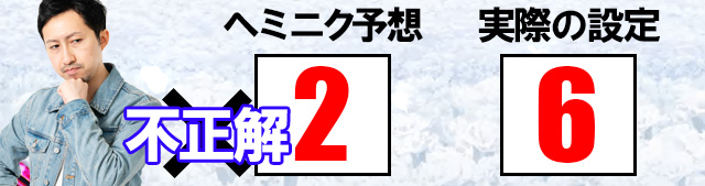 なんとなくですが、事前の予想としては7台中設定6が2台、設定4・5が各1台、他は設定1ってところでしょうか。