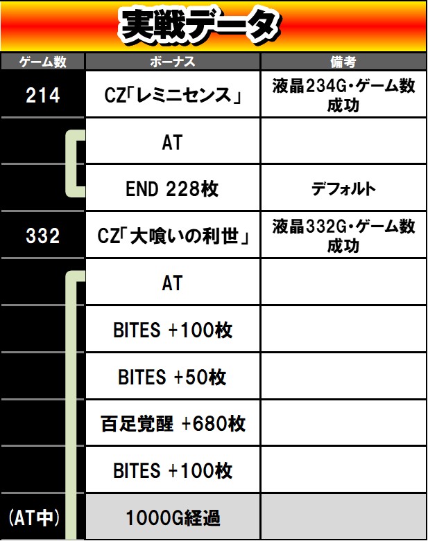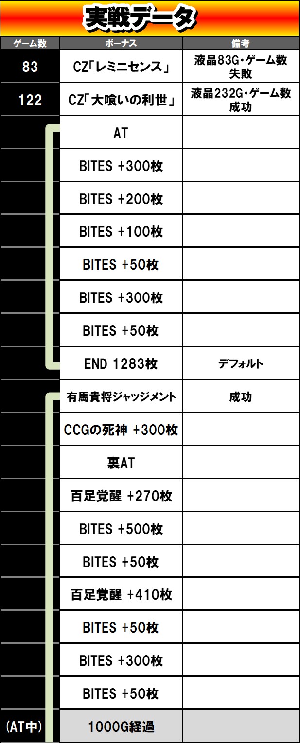 | AT初当り | 1/379(3回) |