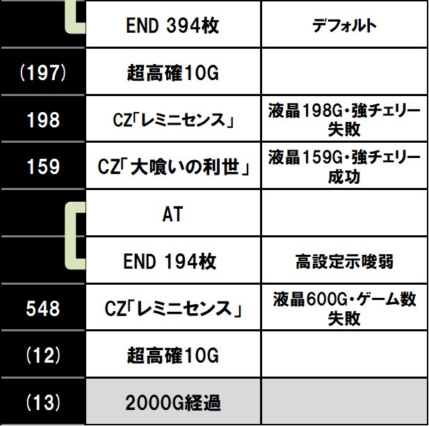 朝イチはATor天国まで設定不問でCZが軽くなると思われるため、ATor天国までは設定推測のサンプル外にしておくのが無難。