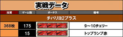とりあえず、初日の雑感としてはこんなところ。チバリヨ2自体はやはり面白いし無印、プラスともにまだまだ稼働が続くと思われます。この実戦がモード移行のヒントになる可能性もあるので、まずは色々なデータを見て狙い目を考察していくのが良いでしょう。