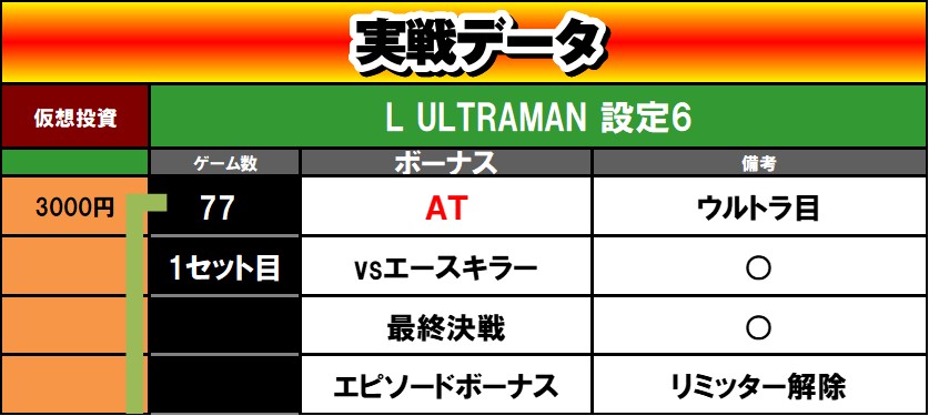 ということでL ULTRAMANの設定6実戦記。ご覧いただきありがとうございます。