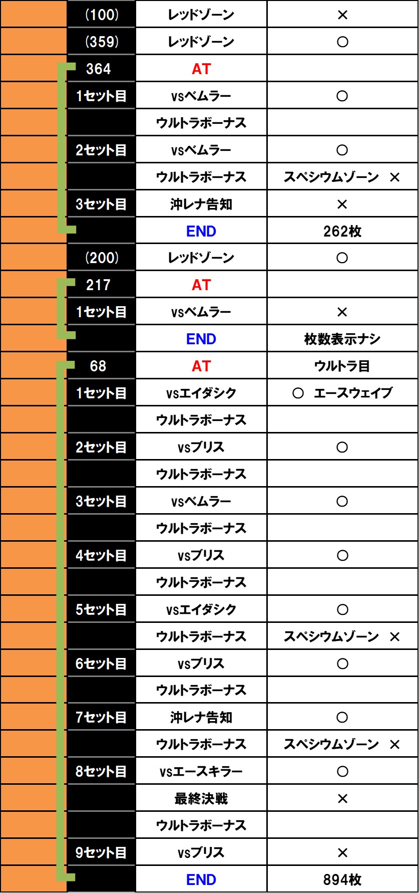 ここで話は1回目のATに戻るのですが、もしかしたらエースウェイブだったのではないでしょうか。それであれば1セット目にエースキラーが出現したのも納得です。