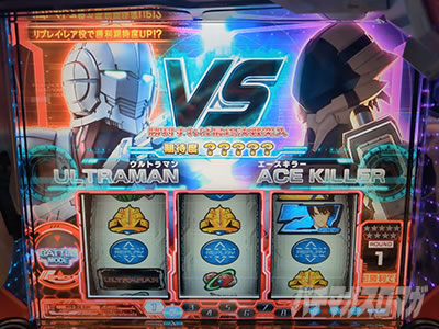 実は最初のエースキラー戦はウルトラ目によって勝利書き換えしていたかもしれません。この1回のレバーオンのおかげで1800枚獲得し、おそらく有利区間リセットまで到達したと考えると胸が熱くなりますねぇ!