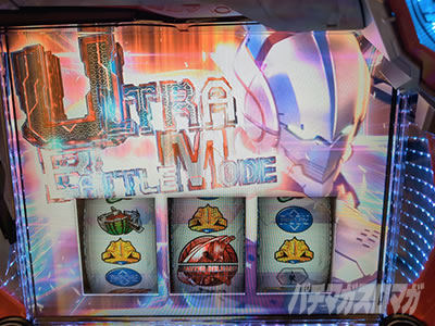 AT「ウルトラバトルモード」は主にバトルパートとボーナスの2部構成となっていて、バトル勝利⇒ボーナス⇒バトル勝利⇒ボーナス…という形で連チャンしていきます。