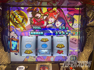 通常時の気になる挙動としては、CZ間200G天井を抜けてしまうと次回は400Gとなるのが普通らしいのですが、200Gスルー⇒200G天井という挙動を確認。