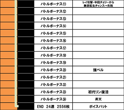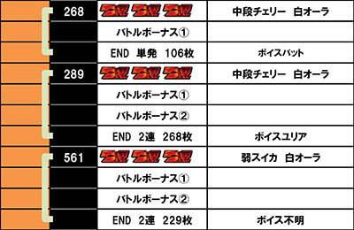 いかなる場合でも25%でバトルボーナスに繋がる2チェも2回しか引けず、もちろん種無し。