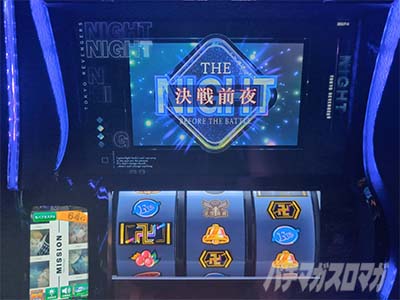 決戦前夜中はステージの色などで期待感を煽り、連続演出へ発展。演出成功で初当りとなります。