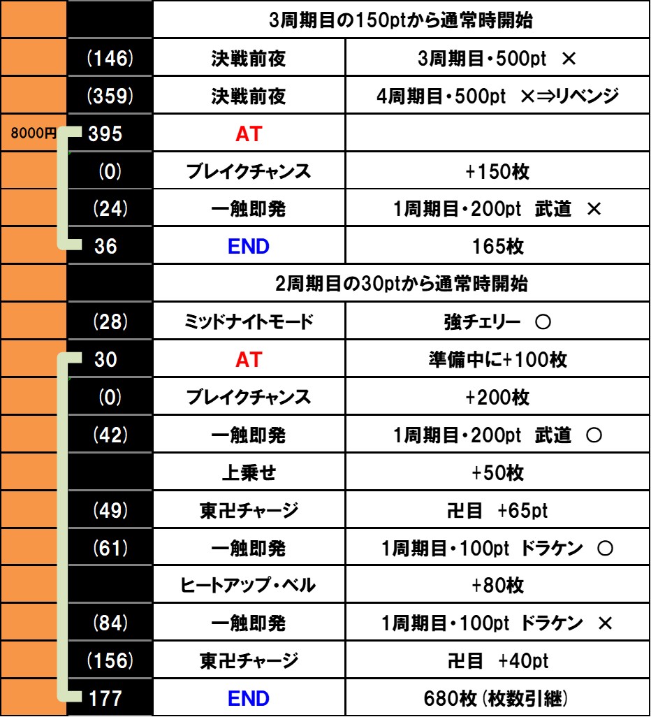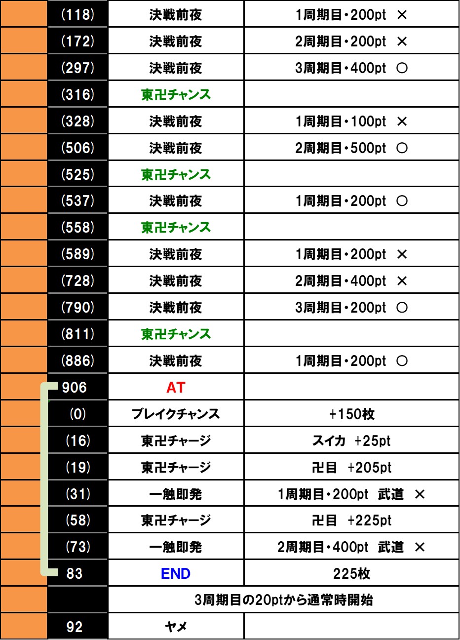 なお、AT中は一触即発勝利時に周期がリセットとなり、AT終了時はポイントと周期を引き継いで通常時へ戻ります。