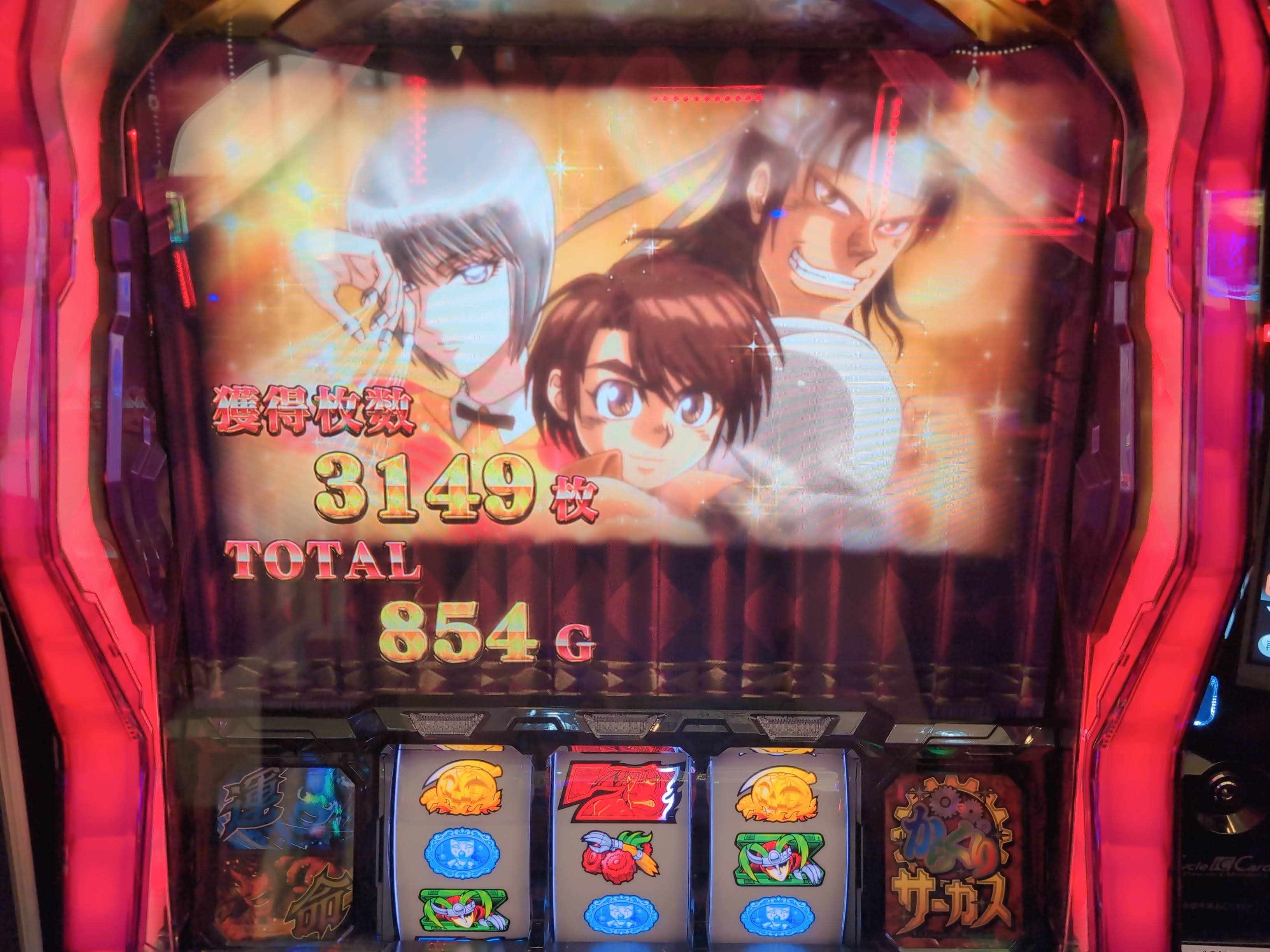 AT終了時には3人画面が出現。やはり高設定を打っていれば出てくれますね。