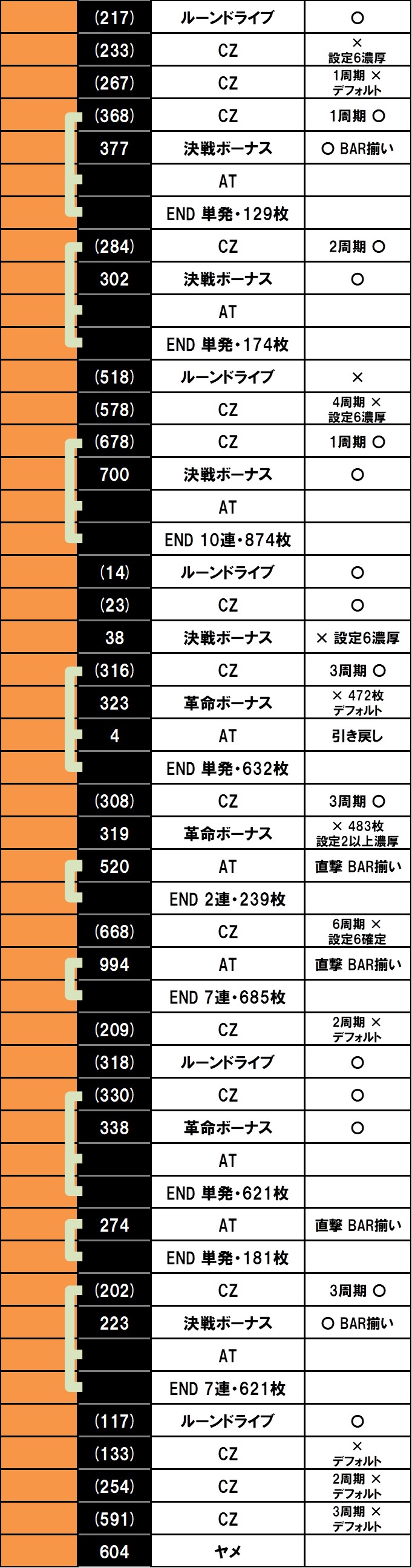 さて、ここからは時間の限りブン回したものの、最後の方はラッシュ入ってもお模様に継続せず、緩やかにノマれていきました…。