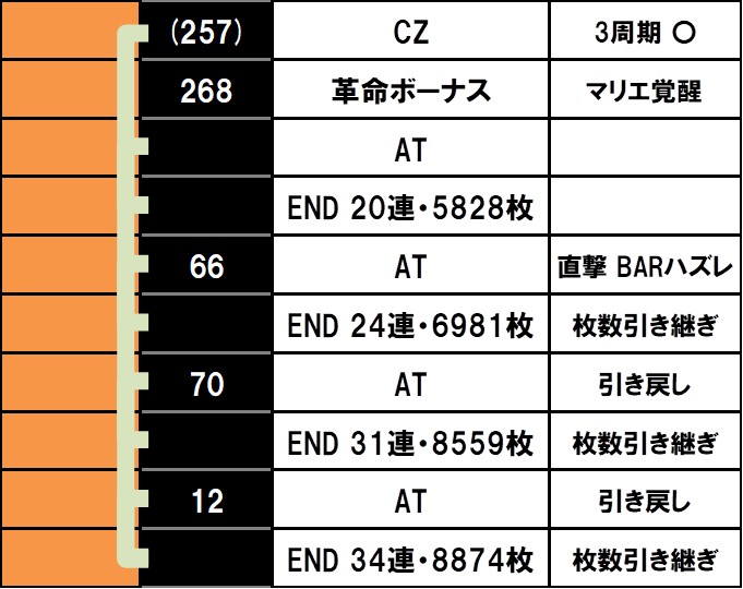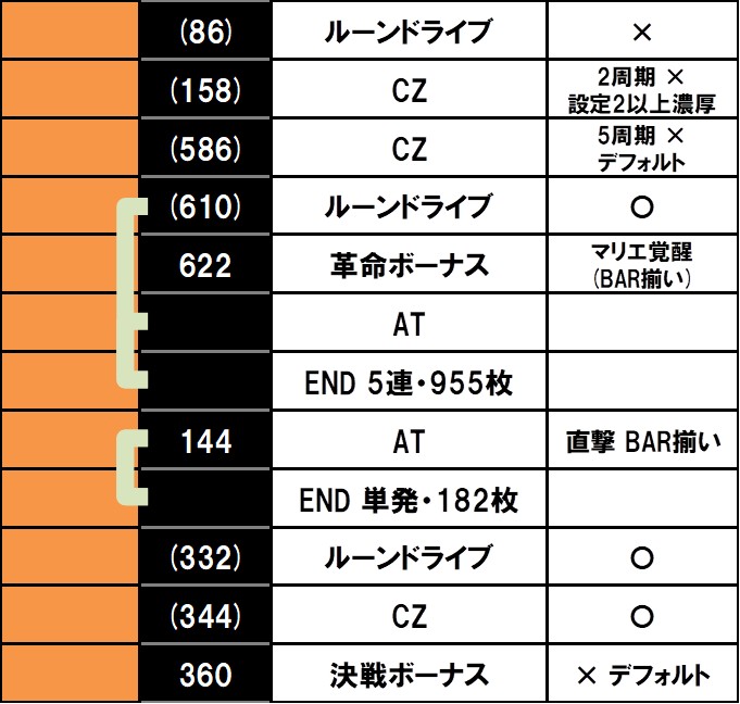 また革命ボーナスと決戦ボーナスの比率ですが、今回は決戦ボーナスの方が多かったので、こちらは参考程度ですかね。