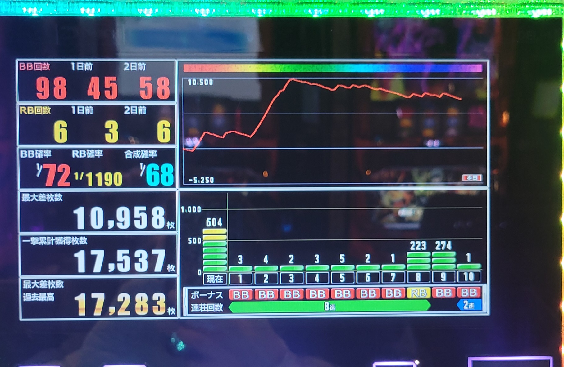 初当りはBAR揃いからのAT直撃と、いきなり設定差のあるところ。