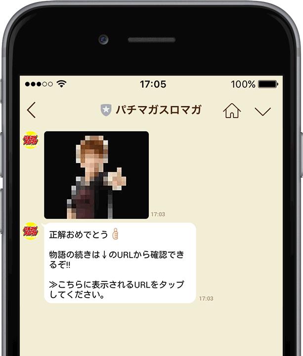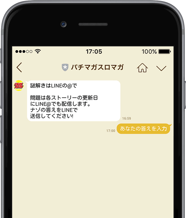 正解が分かったらパチマガスロマガの「LINE」を開いて正解を送信しよう。