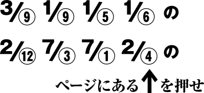 分母にある丸囲みの数字は今まで出題してきた謎の出題番号を表している。今までの答えをひらがなで書き出し、分子の数字にある順番の文字を読み上げていこう。すると、“カイジ3のとめうち”という言葉になる。