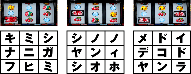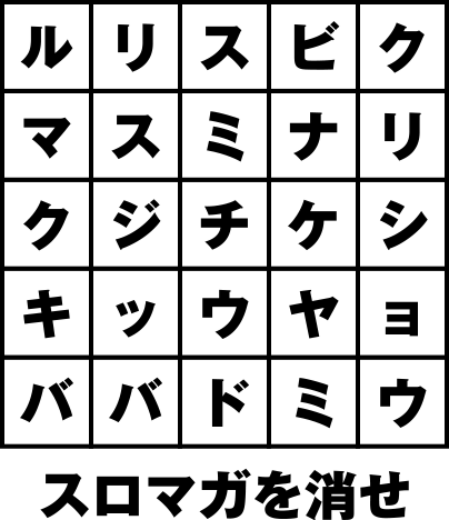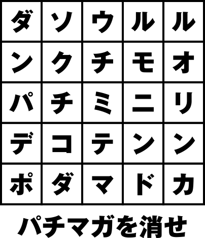 パチマガの軍団・ライター名を消していこう。パンダ・ルル・オモチクン・リンカ・ドテチン・ポコミを消すと「ソウニンデダマ」が残る。