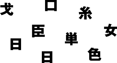 それぞれが漢字の一部になっている。組み合わせると「戦姫絶唱」となる。