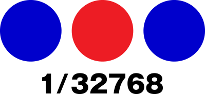 色に注目。とあるボーナス確率「青赤青 1/32768」を指し示している。