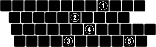 キーボードのシルエット。かな入力での文字をつなげると「よんこまめ」となる。