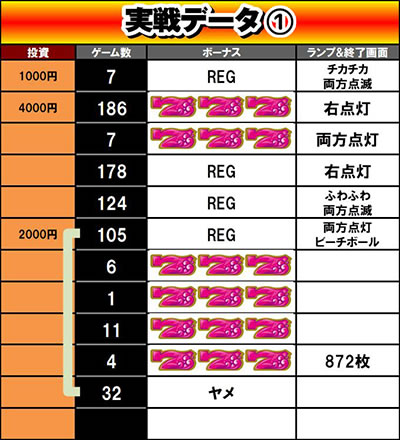 というわけで、今回は3本のデータを紹介しました。これらのデータの収支を合わせると+409枚、1台あたりでは+136枚となりましたが、実はこれには裏があります。すでに気づいている方もいるでしょうが、企画上、「打ち始めて168Gヤメ」のデータを載せていないんですよね。そういったデータも含めると、トータルでは朝イチの0Gから打ち始めていますし、良くてプラマイゼロかと。そのため、しっかりと勝とうとするならば、今の通説となっている「朝イチに少し回っている台を168Gまで回す方法」を行うのが盤石だと思います。で、ボーナスに当ったらモードテーブル推測ツールに入力して、その期待度に応じて続行かヤメを選択すればバッチリですよ。
