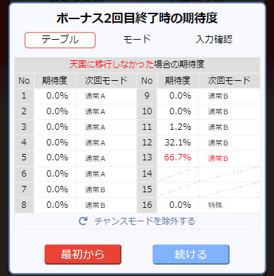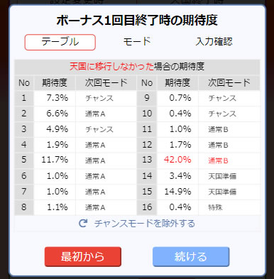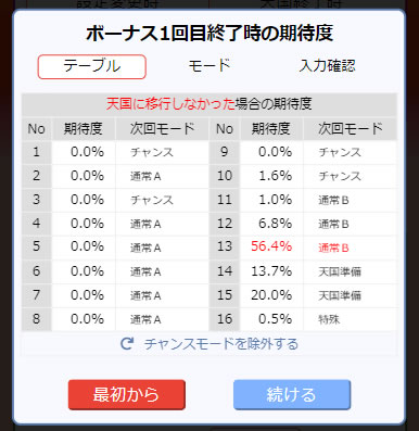 ◆次回テーブルの期待度を「チャンスモード込み」「除外」の2パターンで切り替えられるように。