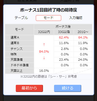◆次回モード期待度に「チャンスモード否定時(201G以降)」を追加。